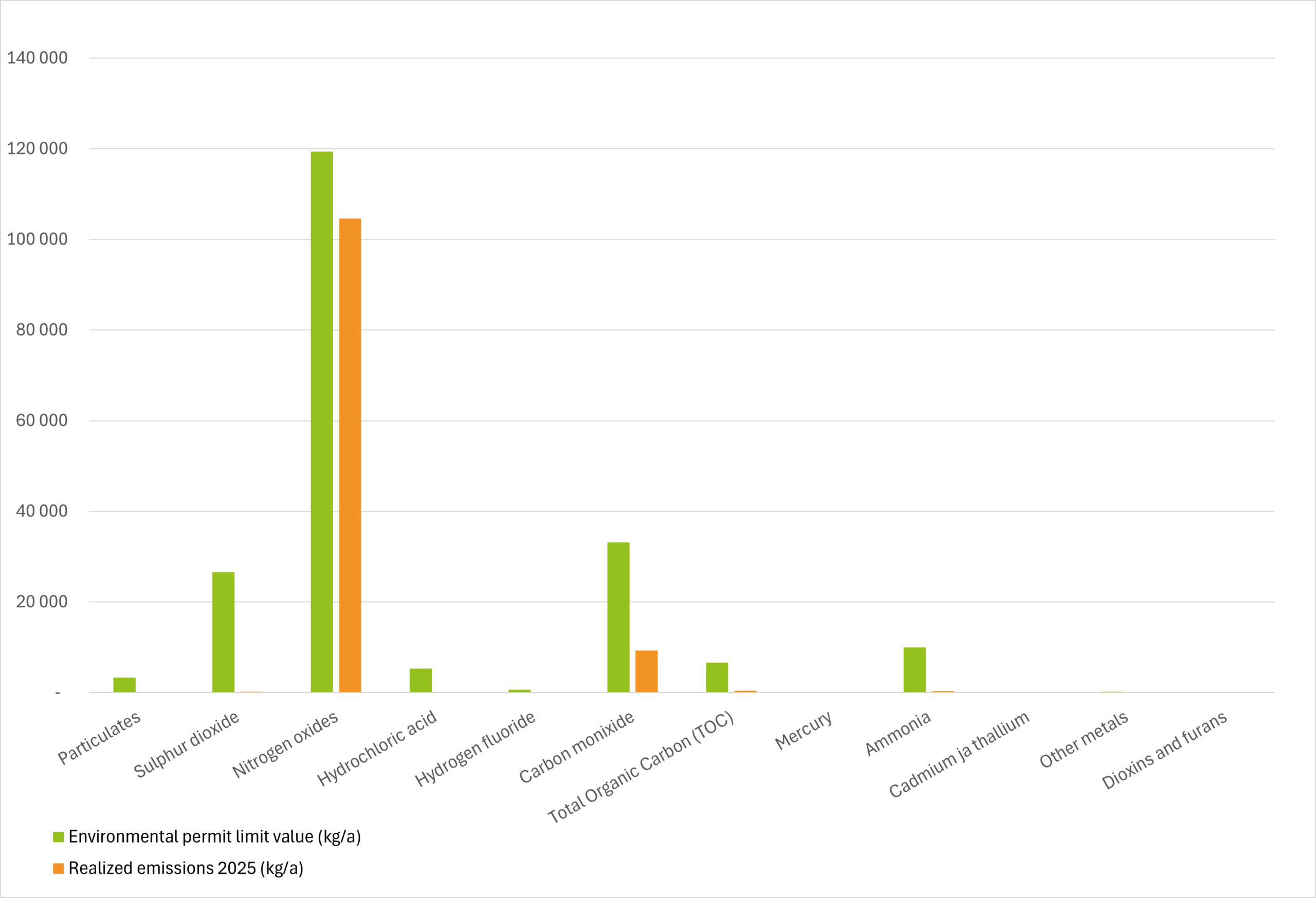The plant’s emissions are strictly regulated, and nine emissions components are monitored using continuous measurements. The Regional State Administrative Agency issued an environmental permit decision on 7 May 2018 for the Korvenmäki waste-to-energy plant, and the plant operates in accordance with its terms. In 2022, the permit decision was revised to comply with the BAT conclusions. At the end of 2023, the permit amendment increased the capacity of the plant from 120 000 tonnes to 135 000 tonnes, and allowed for the treatment of some new waste fractions.