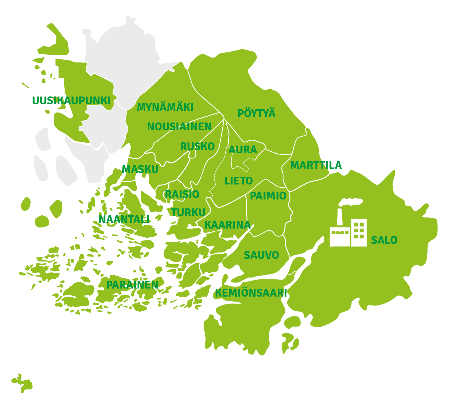 LSJH is owned by 18 municipalities with a combined population of 450,000. LSJH handles all waste management and waste information functions on behalf of these municipalities. Salon Kaukolämpö Oy is owned by the City of Salo, and provides district heating for approximately 15,200 residents.